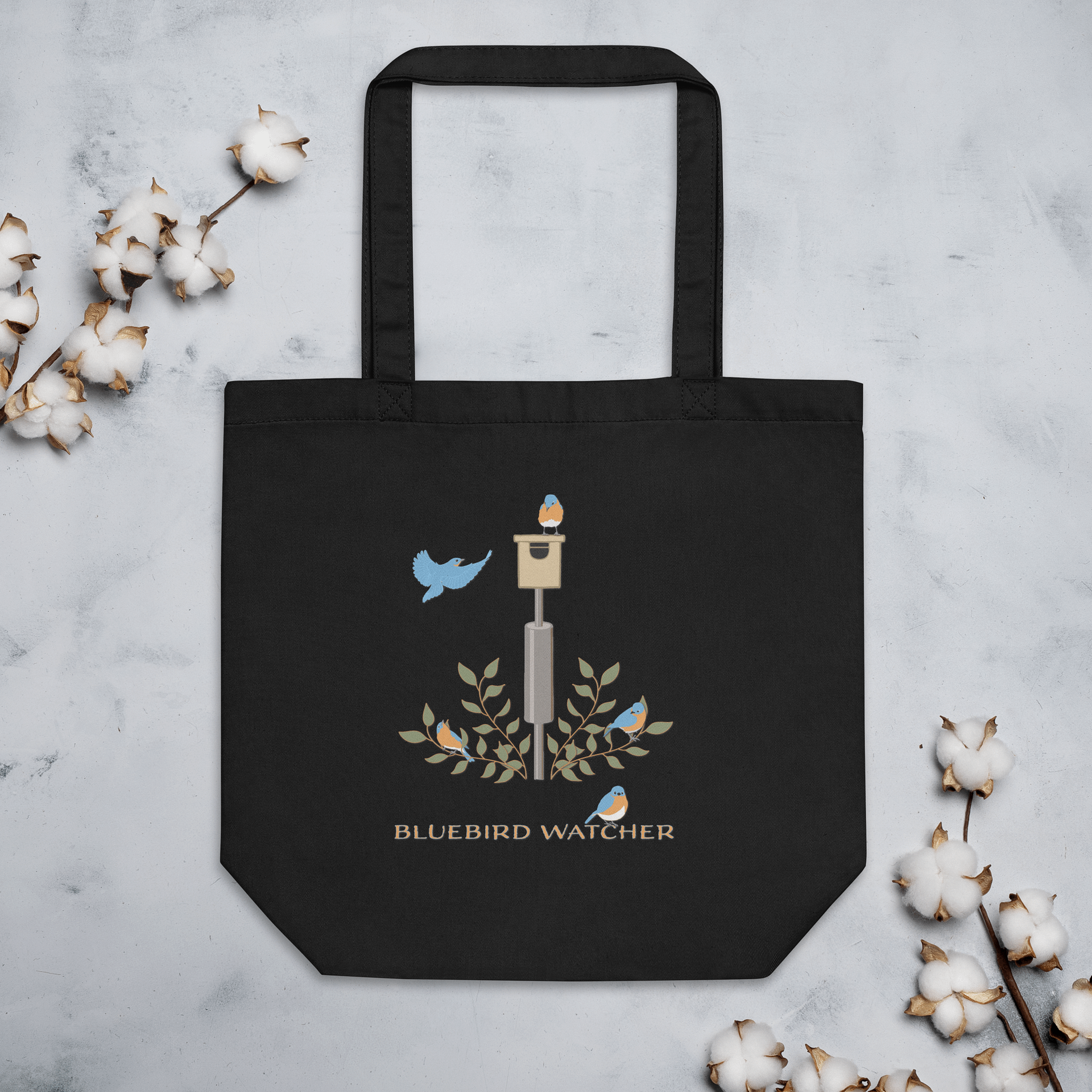 "Bluebird Watcher" Organic Cotton Tote in Black