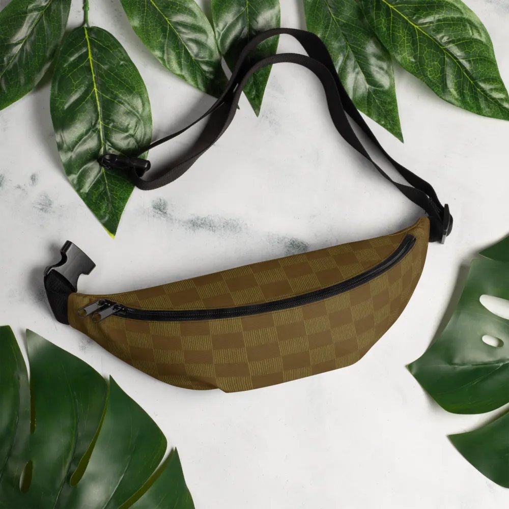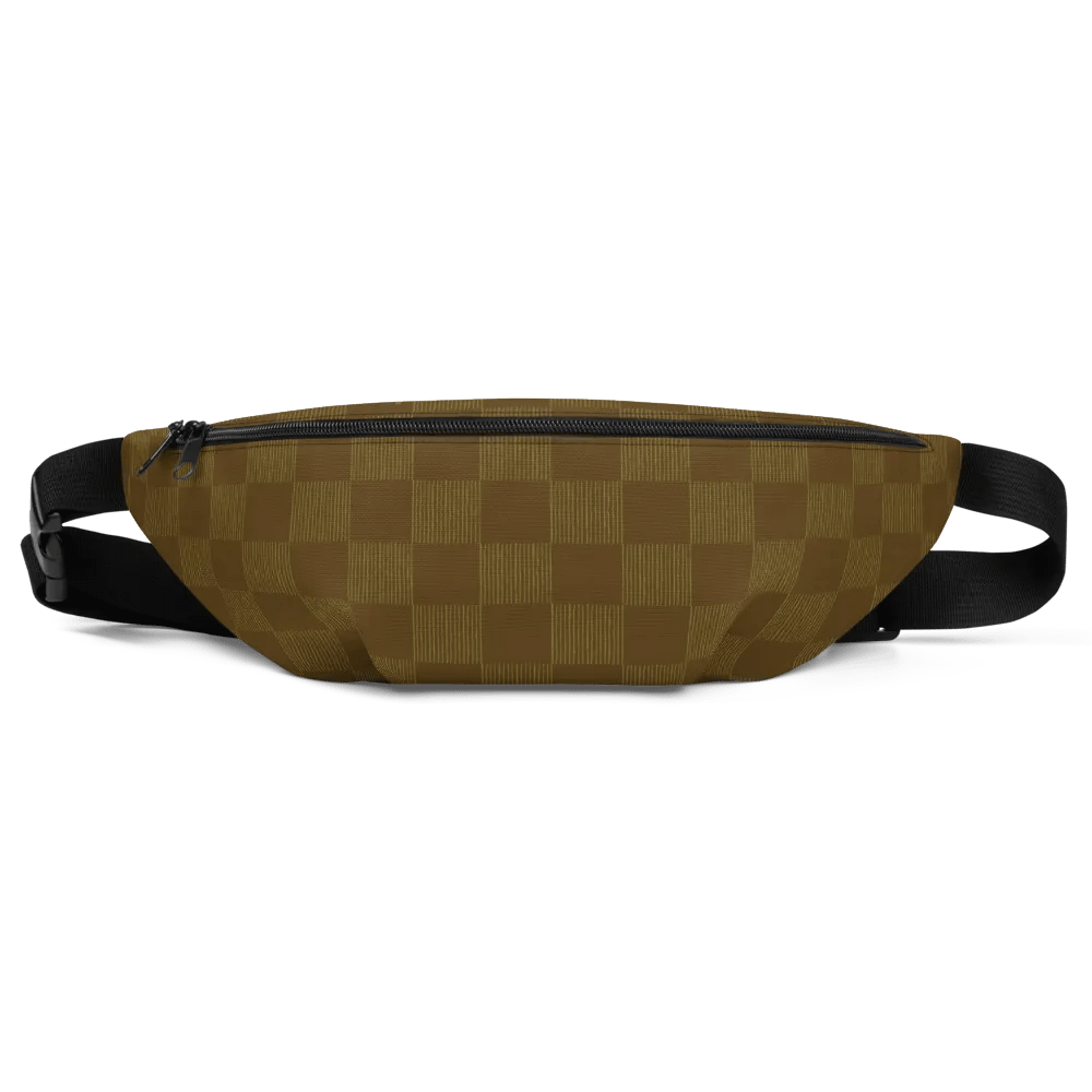 "Hand Drawn Check in Brown and Green" Fanny Pack