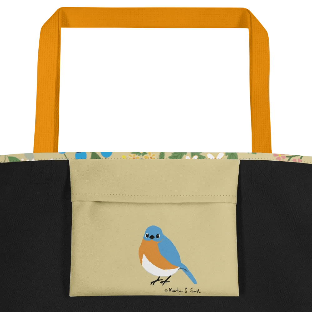 "Happy 'bout Singing the Blues" Large Floral Tote Bag in Tan